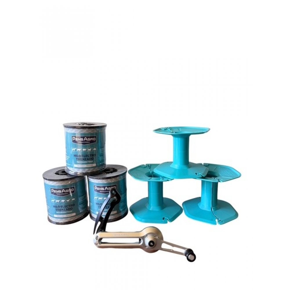 Optimiza la gestión de tus cercas móviles con este kit completo de alto rendimiento. Incluye nuestro avanzado Dispositivo Junta Carretel 4:1 , 6 Bobinas Standard PensAgro y 3 Hilos Electro trenzado de 500 metros.